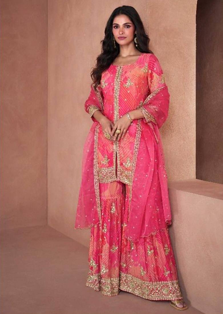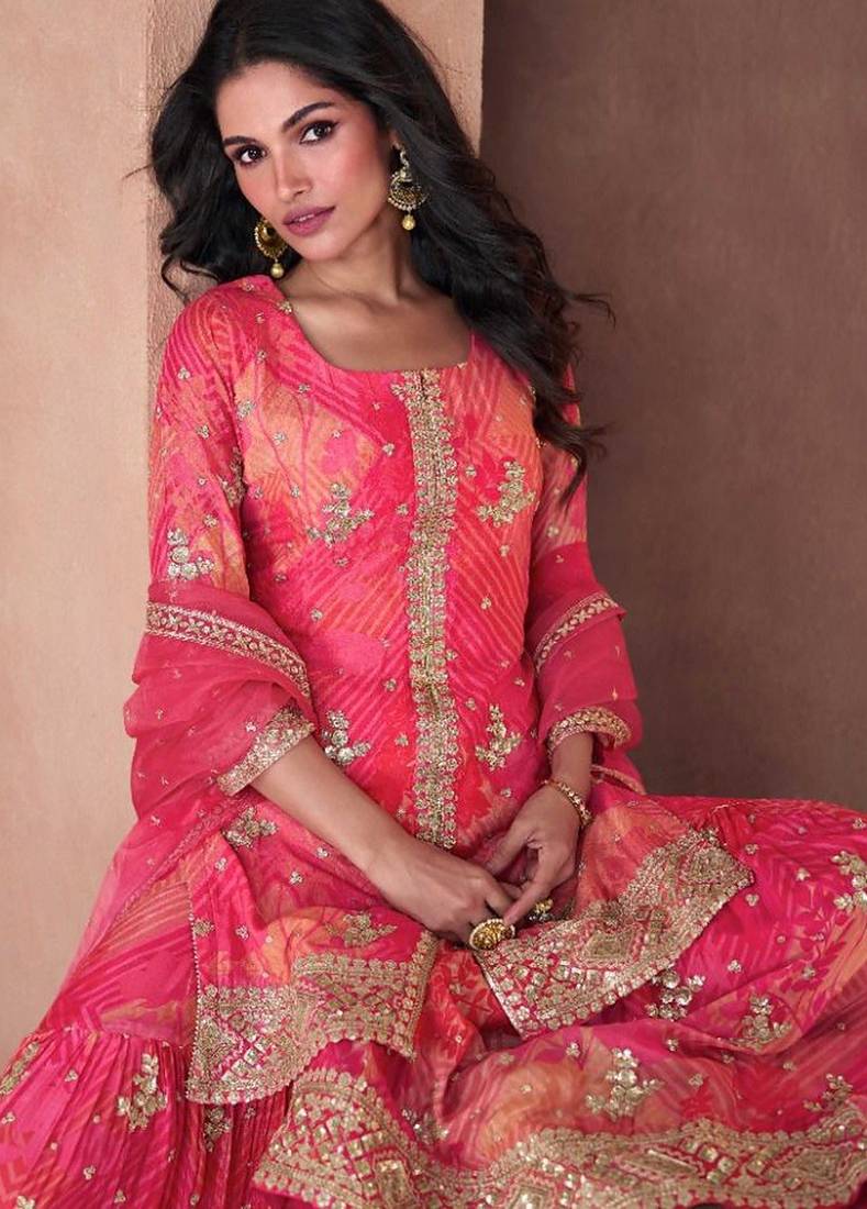 | Product Name | Pure Chiffon Party Wear Sharara In Pink Color With Embroidery Work | |