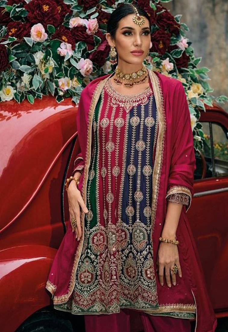 | Product Name | Red Embroidered Pure Chiffon Party Wear Sharara Suit Set | |