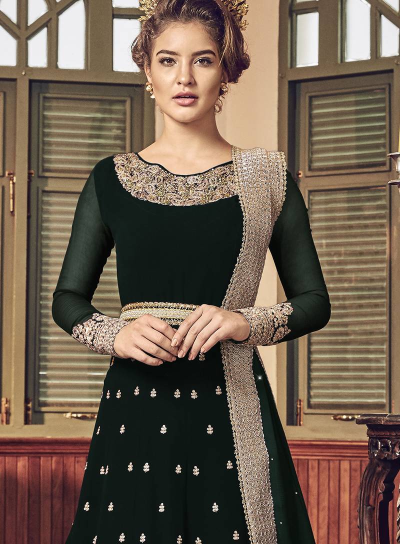 | Product Name | Green Pure Georgette Semi Stitched Party Gown With Embroidery Work | |