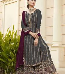 Pure georgette party wear sharara in grey color with embroidery work semi stitched