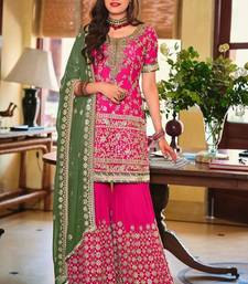 Pink georgette sharara set with embroidered work semi stitched