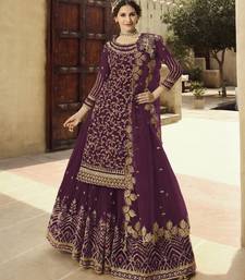 Soft premium net wedding wear sharara in light violet color with embroidery work semi stitched