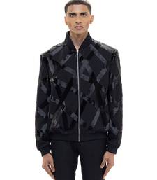 Black embroidered woolen blends jacket