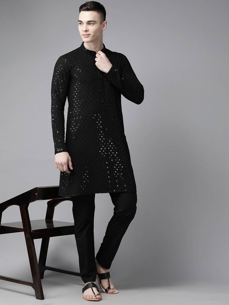 | Product Name | Men Black Floral Embroidered Sequined Rayon Kurta | |