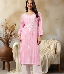 Seva chikan hand embroidered lucknowi chikankari pink rayon kurta scl4407