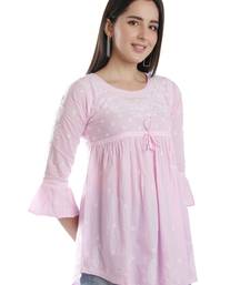 Seva chikan hand embroidered pink cotton lucknowi chikankari top