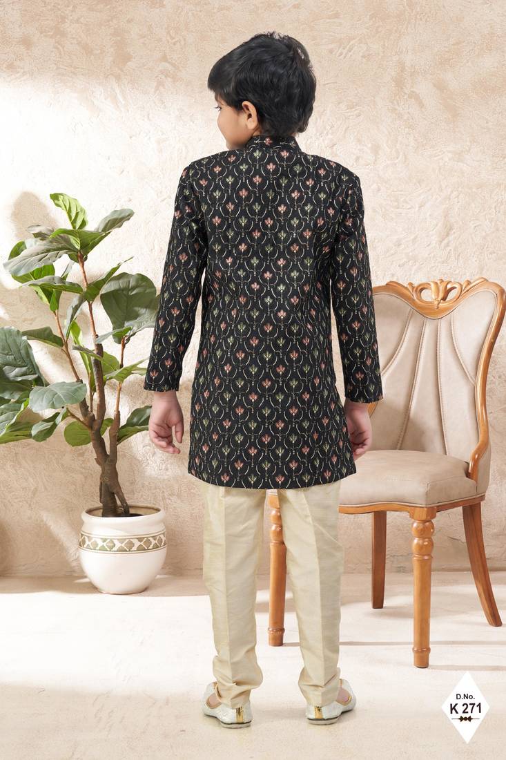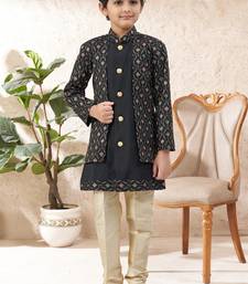 | Product Name | Black Dupion Silk Embroidered Indo Western Set For Boys | |