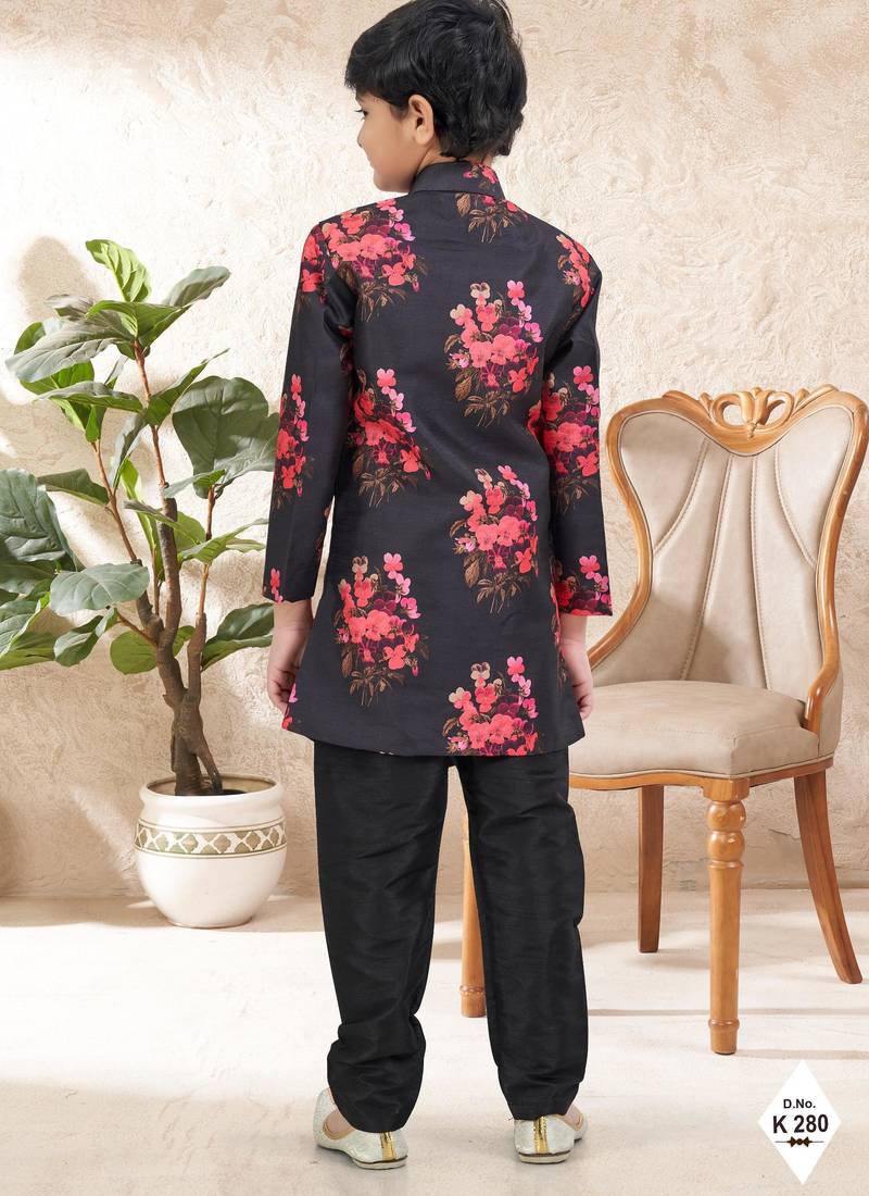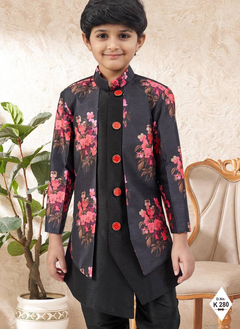 | Product Name | Black Dupion Silk Embroidered Indo Western Set For Boys | |