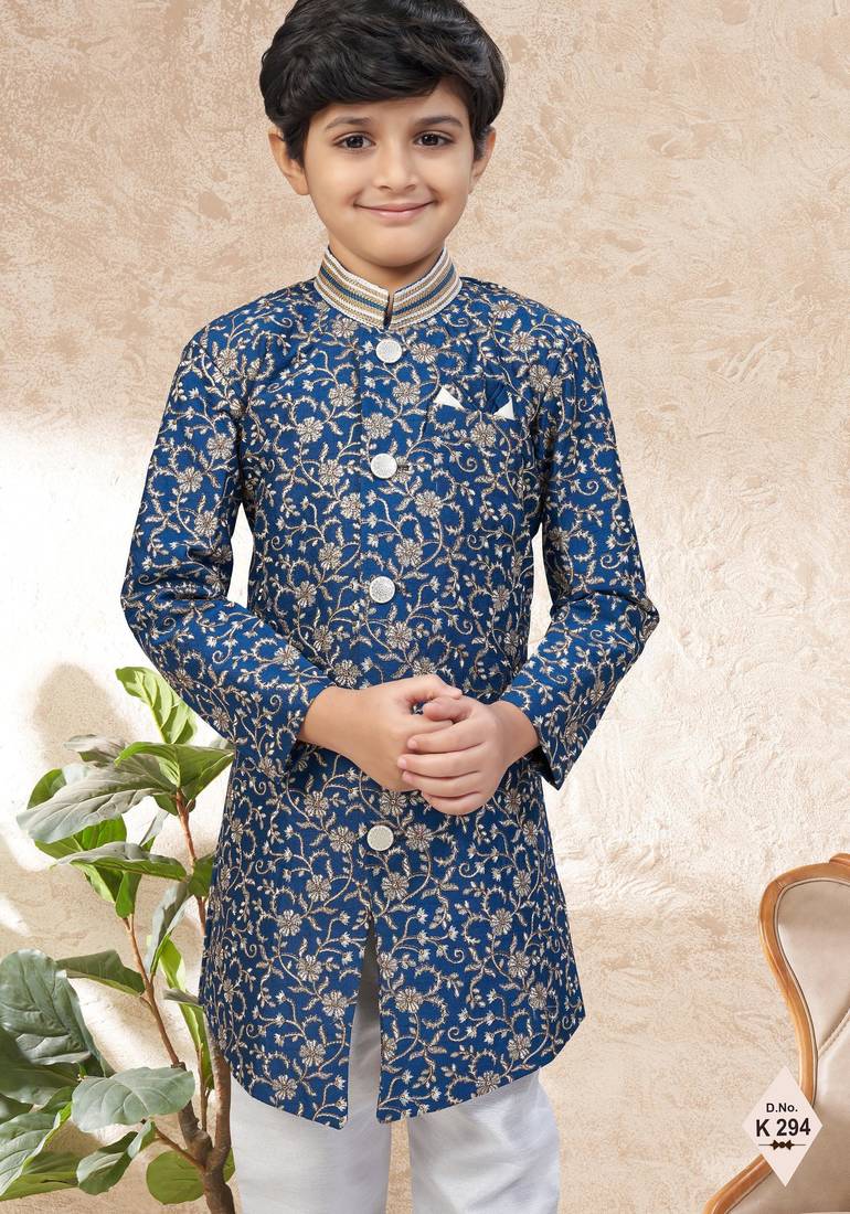 | Product Name | Blue Dupion Silk Embroidered Indo Western Set For Boys | |