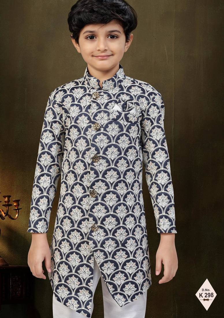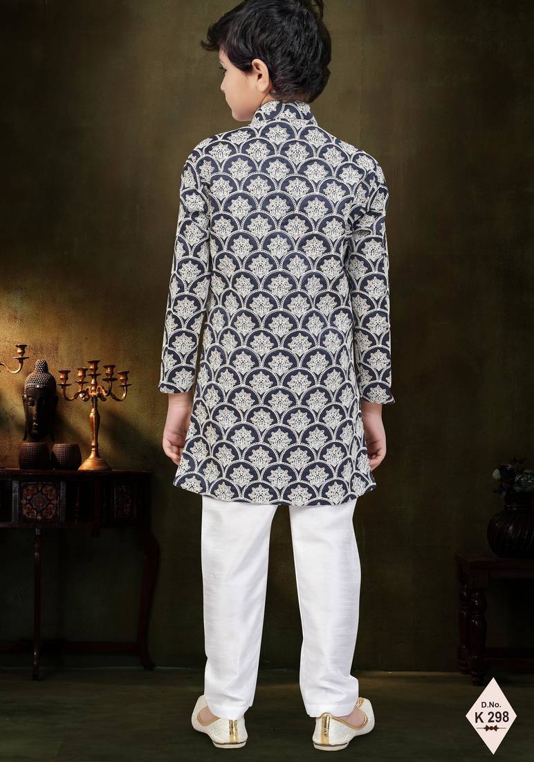 | Product Name | Blue Dupion Silk Embroidered Indo Western Set For Boys | |