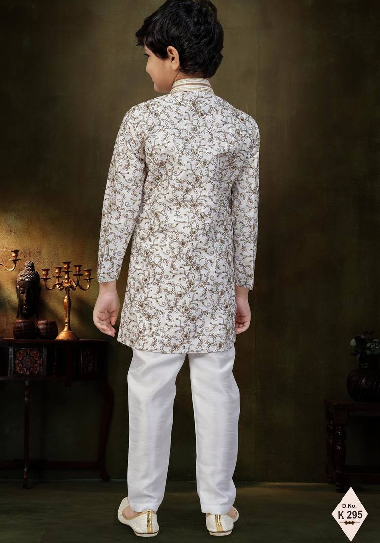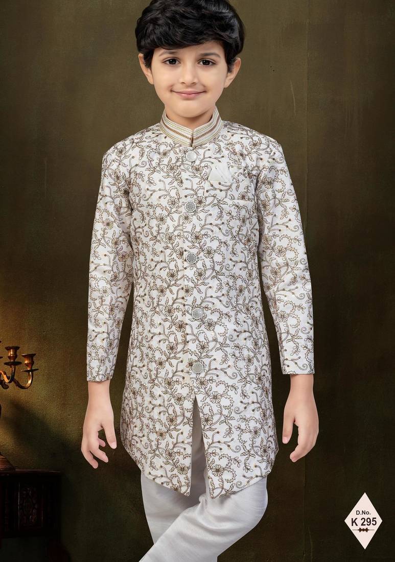 | Product Name | Cream Dupion Silk Embroidered Indo Western Set For Boys | |