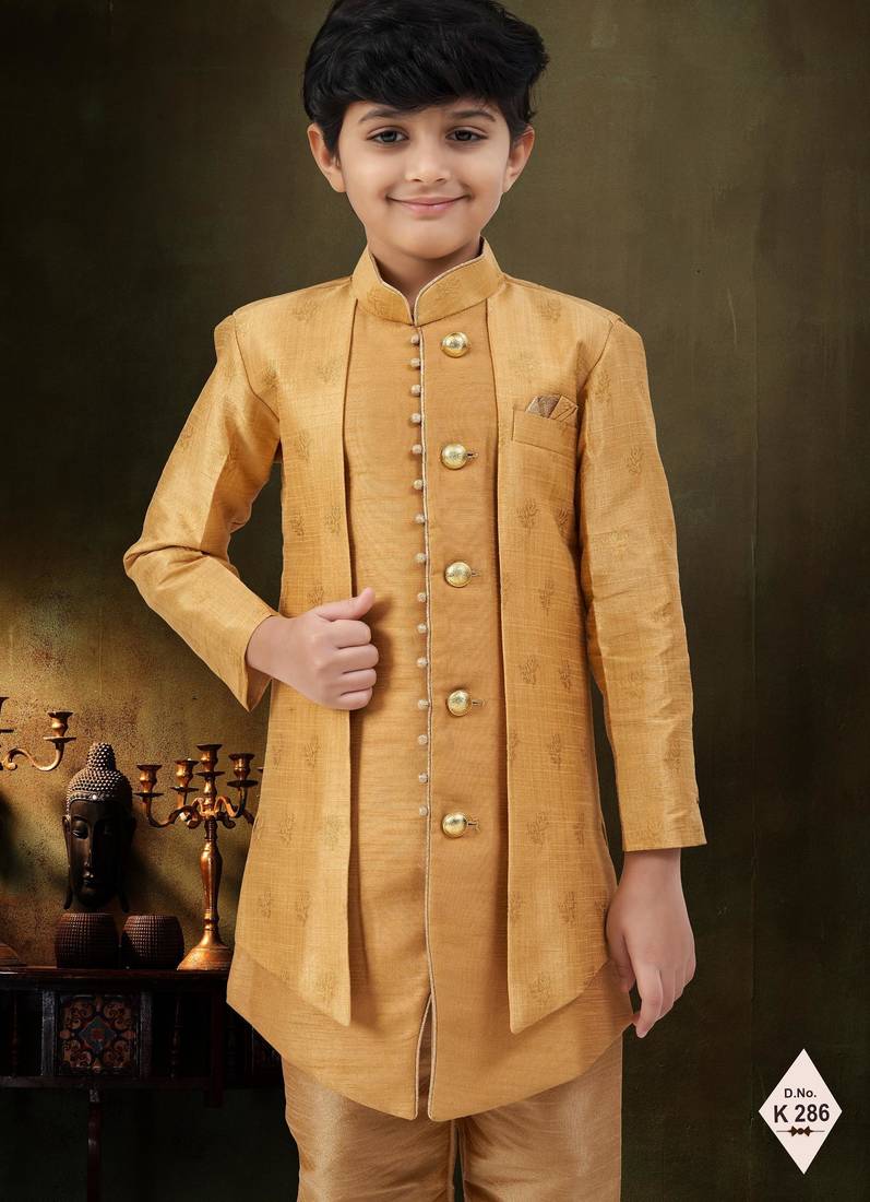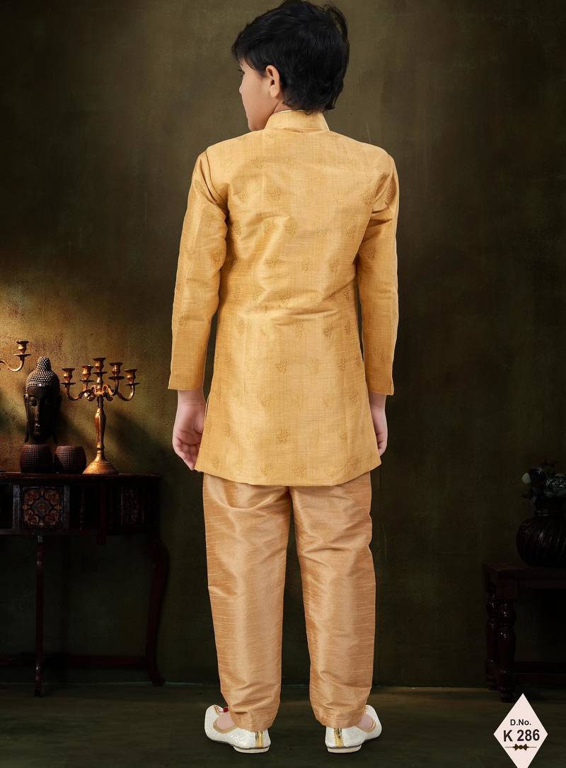 | Product Name | Gold Dupion Silk Embroidered Indo Western Set For Boys | |