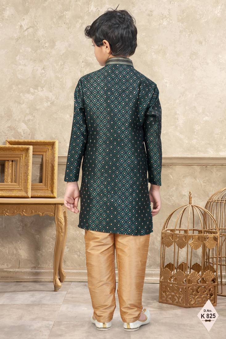 | Product Name | Green Banarasi Jacquard Woven Kurta Pajama For Boys | |