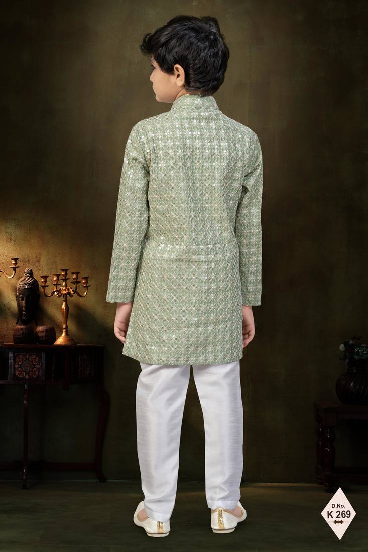 | Product Name | Green Dupion Silk Embroidered Indo Western Set For Boys | |