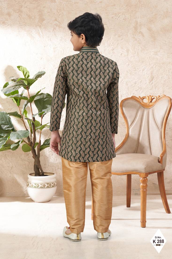 | Product Name | Green Dupion Silk Embroidered Indo Western Set For Boys | |