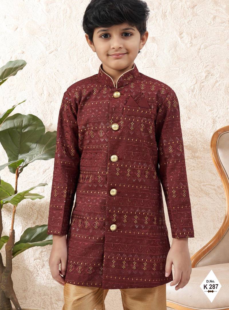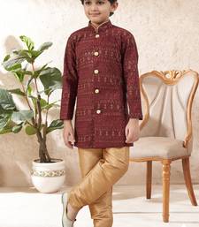 | Product Name | Maroon Dupion Silk Embroidered Indo Western Set For Boys | |