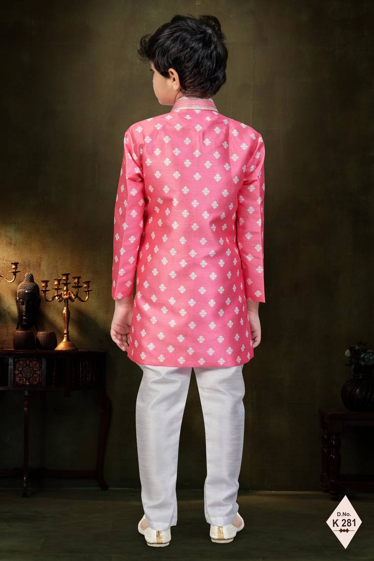 | Product Name | Pink Dupion Silk Embroidered Indo Western Set For Boys | |