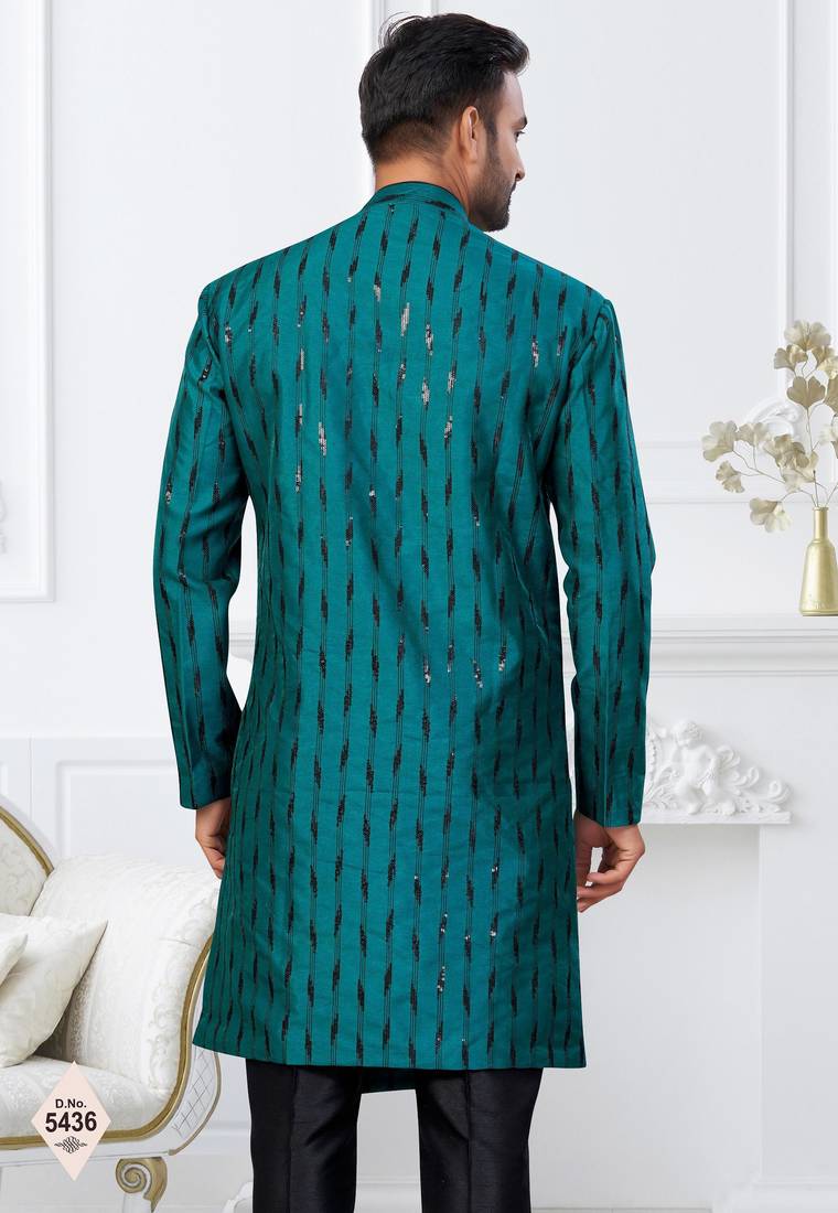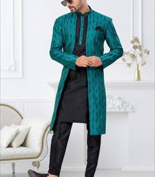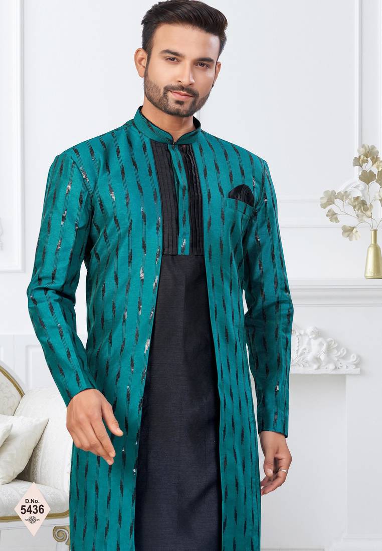 Rama green & black imported silk and banarasi silk indowestern for mens