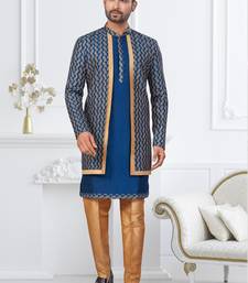 | Product Name | Royal Blue And Beige Imported Silk And Banarasi Silk Indowestern For Mens | |