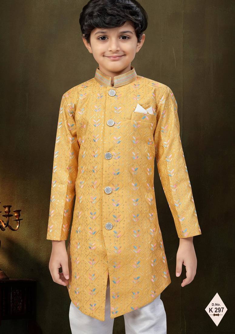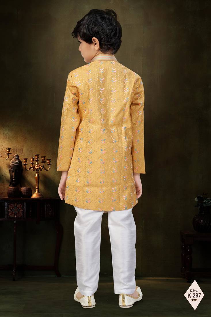 | Product Name | Yellow Dupion Silk Embroidered Indo Western Set For Boys | |