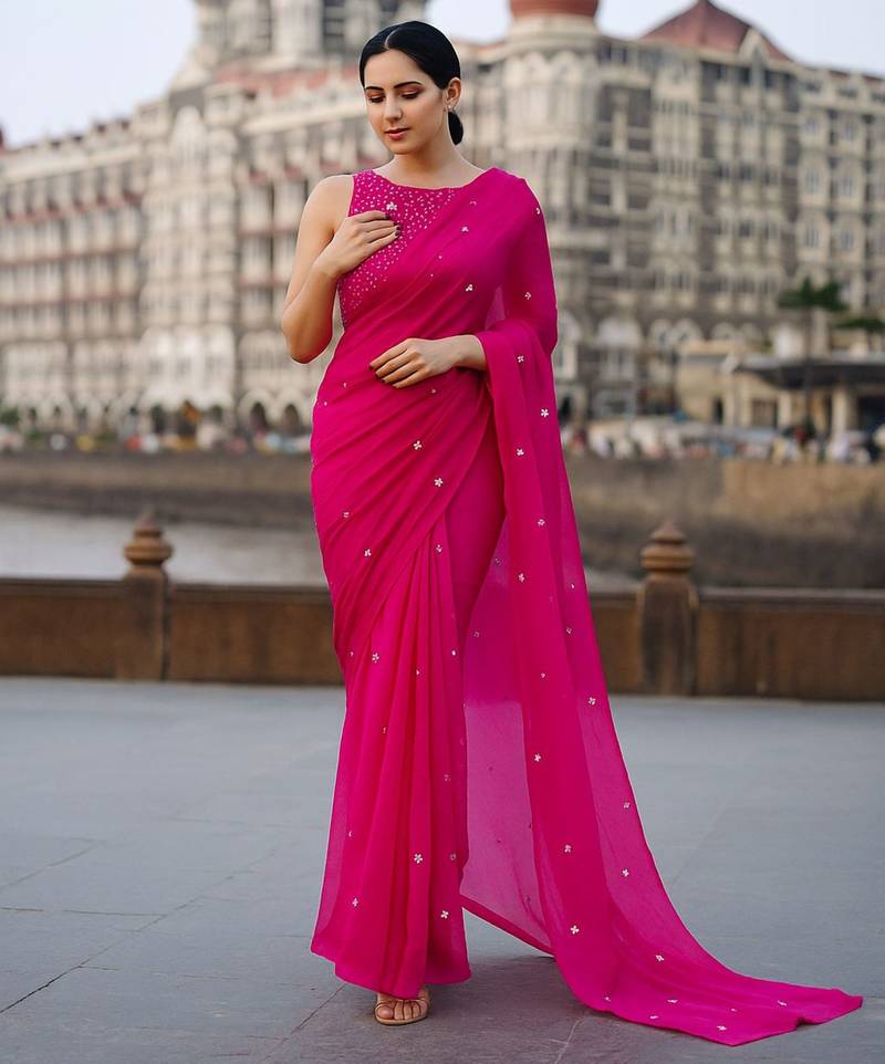 | Product Name | Bright Pink Organza Sequence Work Saree Without Blouse | |