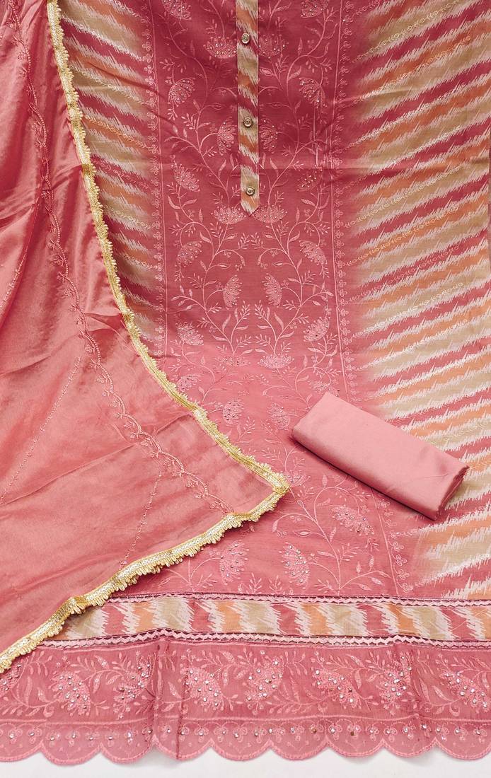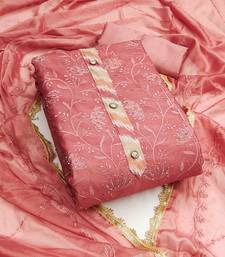 Baby-pink embroidered chanderi semi stitched churidar dress-materials