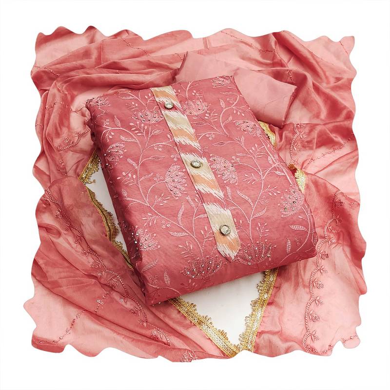 | Product Name | Baby Pink Embroidered Chanderi Semi Stitched Churidar Dress Materials | |
