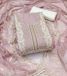 Baby-pink embroidered cotton semi stitched churidar dress-materials