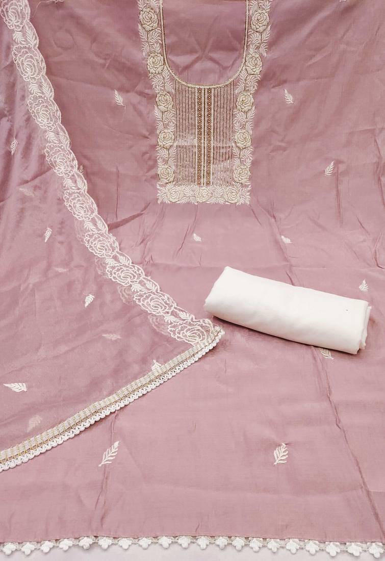 | Product Name | Baby Pink Embroidered Cotton Semi Stitched Churidar Dress Materials | |