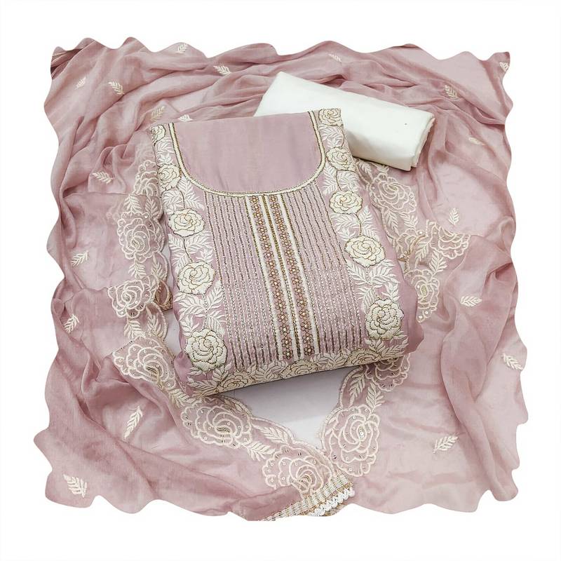 | Product Description | Signature Heavy Thread Handwork Embroidery And Fancy Border With Designer Embroidered Dupatta Straight Style 2.20 Mtr Unstitched Dress Material Top Of Baby Pink Colour Premium Roman Cotton Fabric Also Including 2.40 Mtr Chudidar Style Bottom Piece Material Of White Colour Rayon Fabric With 2.10 Mtr Dupatta Of Baby Pink Colour Nazneen Fabric By Shadow & Saining Brand |