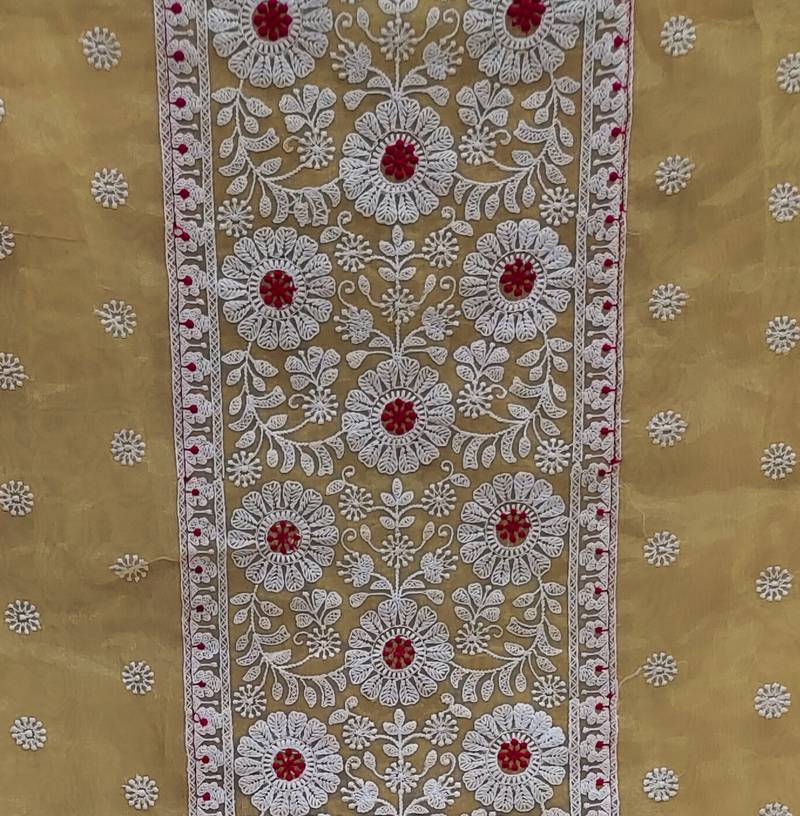 | Product Name | Beige Organza Embroidered Dress Material | |