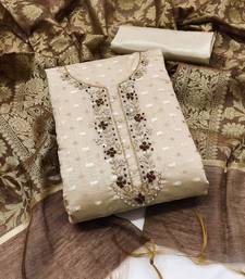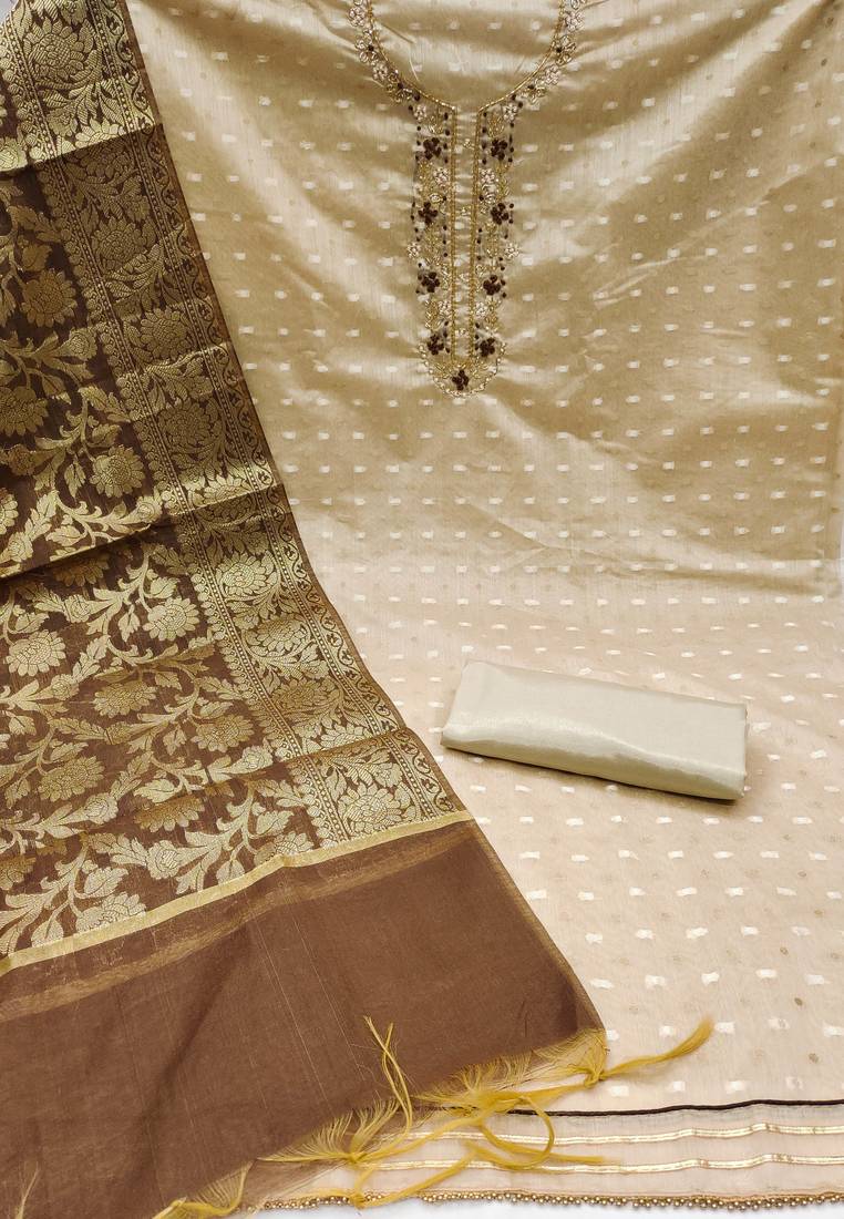 | Product Description | Fancy Hand Work And Weaving With Banarasi Jacquard Dupatta Straight Style 1.80 Mtr Unstitched Dress Material Top Of Beige Colour Banarasi Jacquard Fabric With 2 Mtr Santoon As Lining Inner Fabric Also Including 2.00 Mtr Unstitched Bottom Material Of Beige Colour Santoon Fabric With 2.00 Mtr Dupatta Of Brown Colour Banarasi Jacquard Fabric |