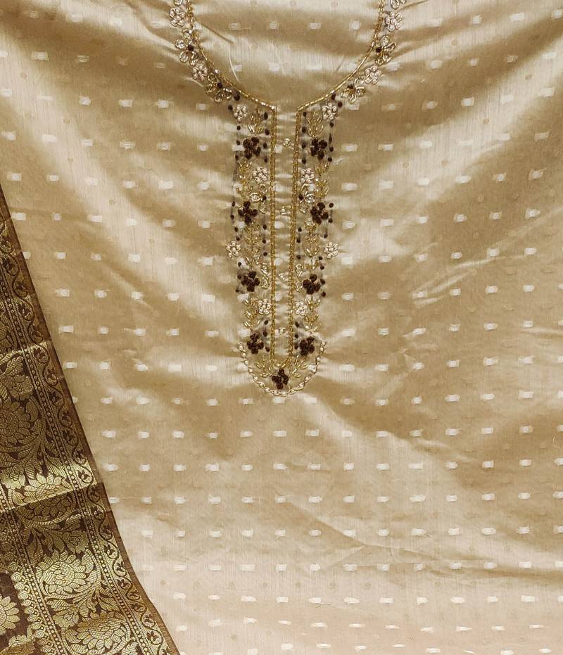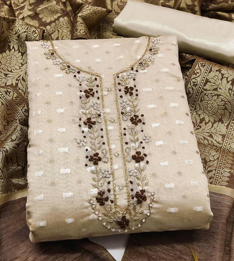 | Product Name | Beige Jacquard Hand Embroidery Dress Material | |