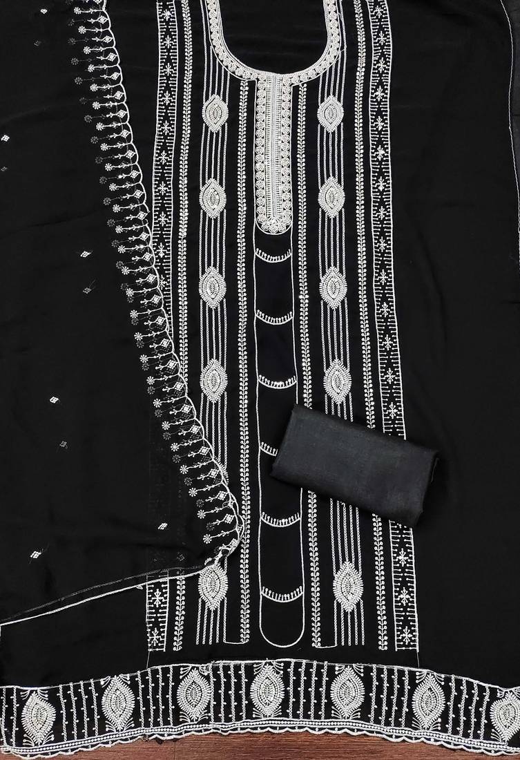 | Product Name | Black Embroidered Georgette Semi Stitched Churidar Dress Materials | |