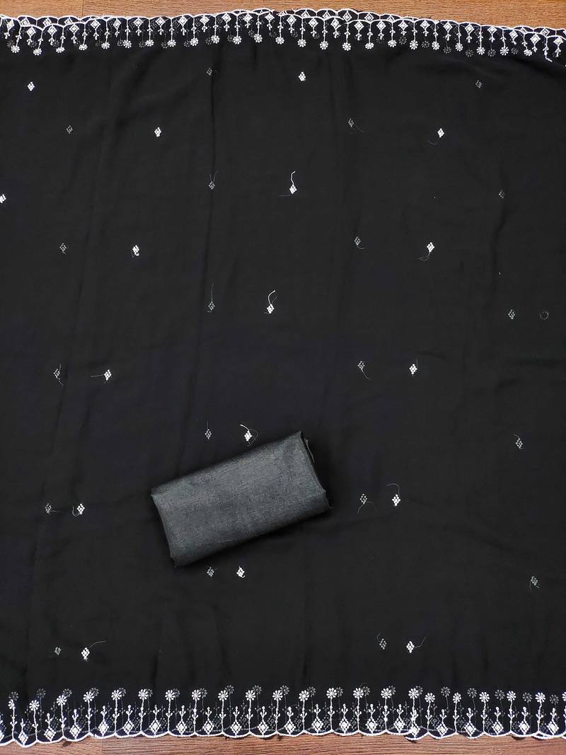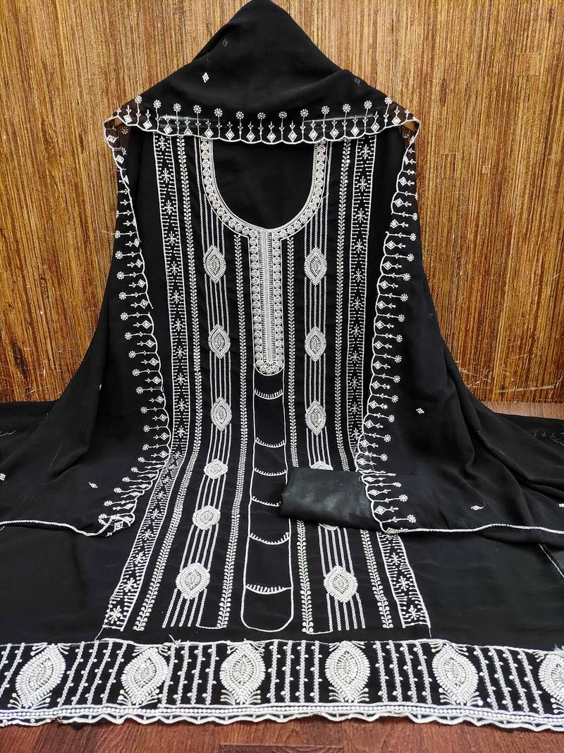 | Product Description | Versatile Heavy Thread Embroidery And Fancy Border With Designer Embroidered Dupatta Straight Style 2.00 Mtr Unstitched Dress Material Top Of Black Colour Georgette Fabric With 2 Mtr Santoon As Lining Inner Fabric Also Including 3.60 Mtr Unstiched Bottom Material Of Black Colour Santoon Fabric With 2.00 Mtr Dupatta Of Black Colour Georgette Fabric By Shadow & Saining Brand |