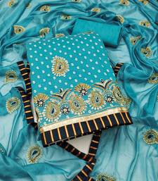 | Product Name | Blue Embroidered Cotton Semi Stitched Churidar Dress Materials | |