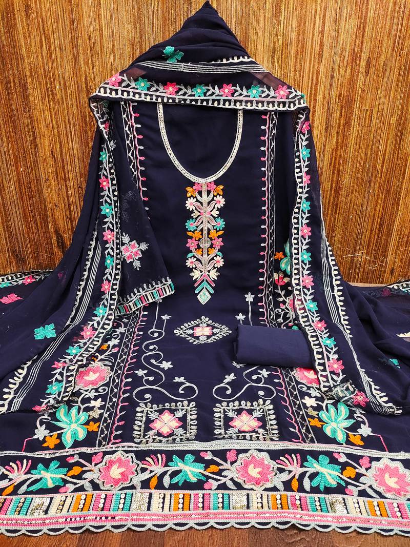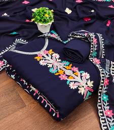 Blue georgette embroidered dress material unstitched