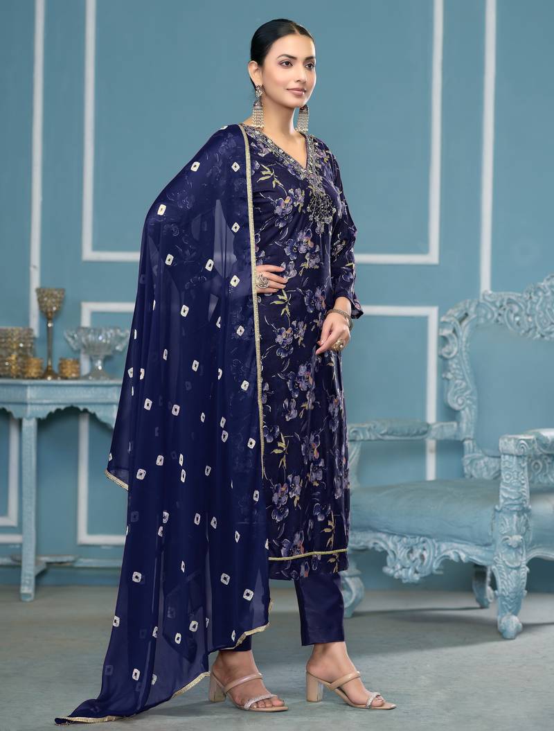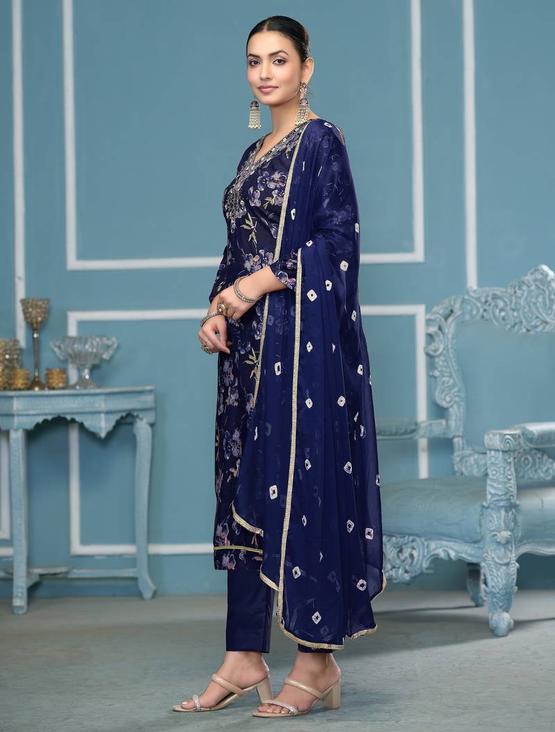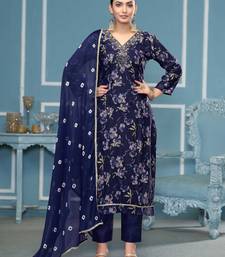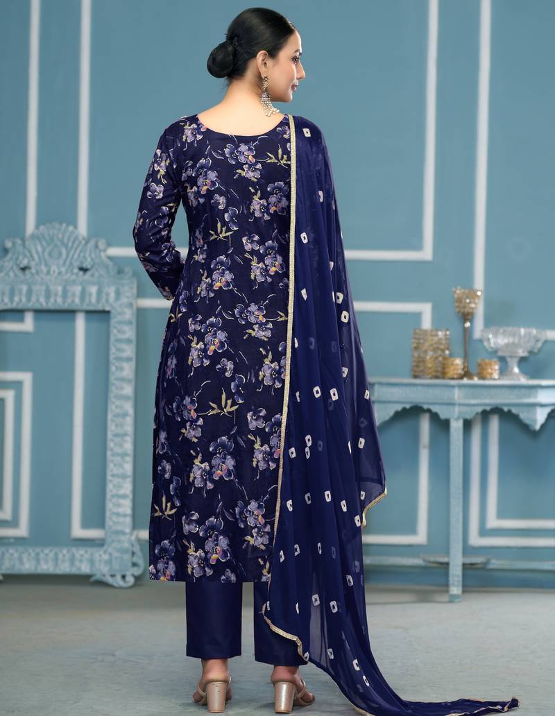 Easy Care Designer Digital Print And Handwork With Emblished Dupatta Straight Style 2.00 Mtr Unstitched Dress Material Top Of Blue Colour Jaam Cotton Fabric Also Including 2.40 Mtr Chudidar Style Bottom Piece Material Of Blue Colour Pure Cotton Fabric With 2.10 Mtr Dupatta Of Blue Colour Nazneen Fabric By Shadow & Saining Brand