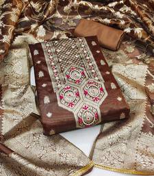 Brown shimmer hand embroidery dress material unstitched
