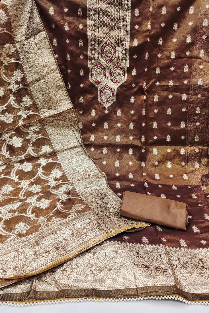 | Product Description | Fancy Handwork And Border With Weaving Dupatta Straight Style 2.25 Mtr Unstitched Dress Material Top Of Irish Brown Colour Simmer Banarasi Fabric With 2 Mtr Santoon As Lining Inner Fabric Also Including 3.80 Mtr Unstitched Bottom Material Of Irish Brown Colour Santoon Fabric With 2.00 Mtr Dupatta Of Irish Brown Colour Simmer Banarasi Fabric |