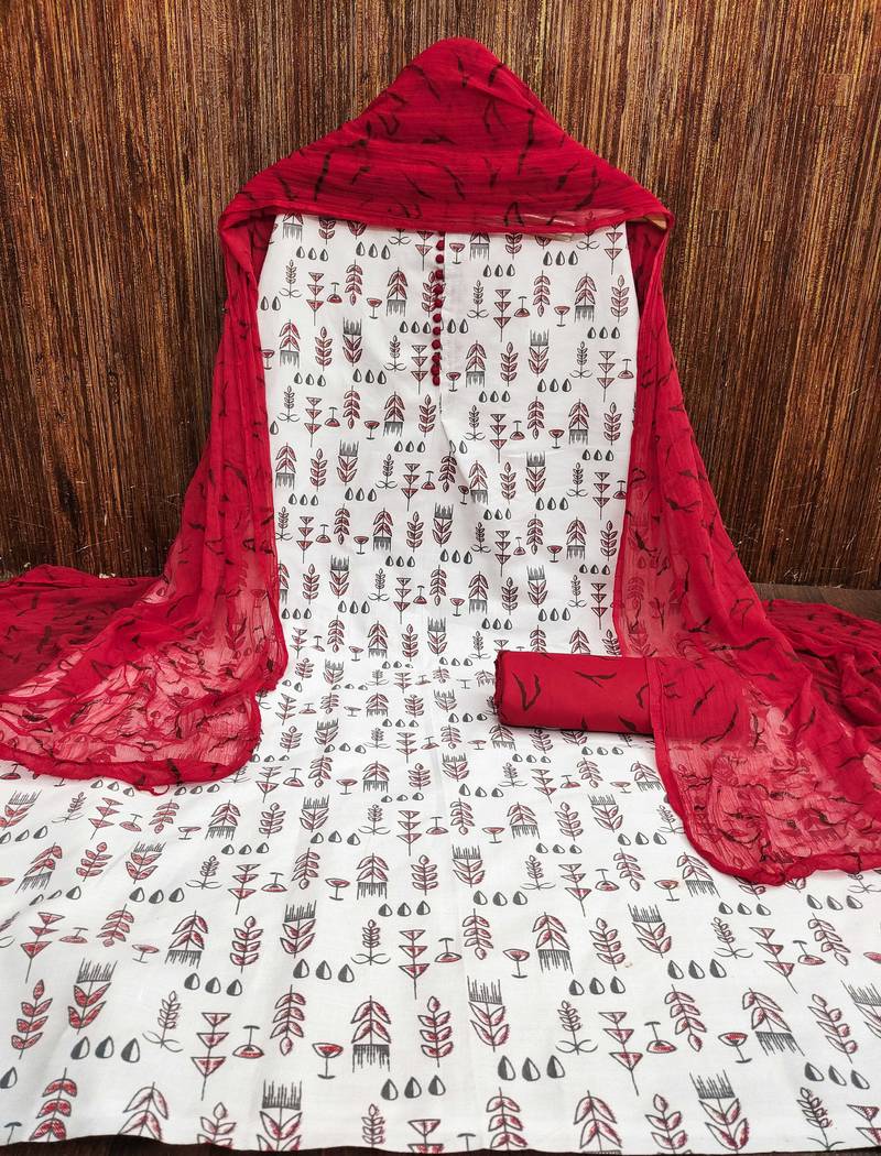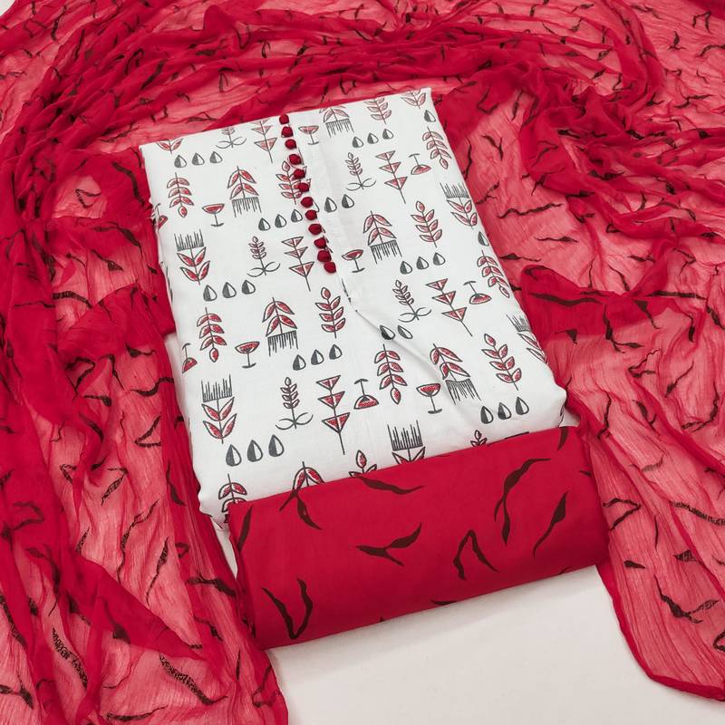 | Product Description | Dashing Print Straight Style 1.80 Mtr Unstitched Dress Material Top Of Cream Colour Slub Cotton Fabric Also Including 2.00 Mtr Chudidar Style Bottom Piece Material Of Red Colour Cotton Fabric With 2.00 Mtr Dupatta Of Red Colour Nazneen Fabric |