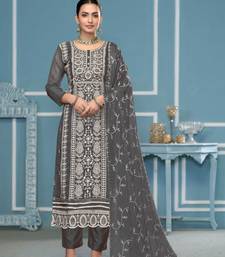 Dark-grey embroidered organza semi stitched churidar dress-materials