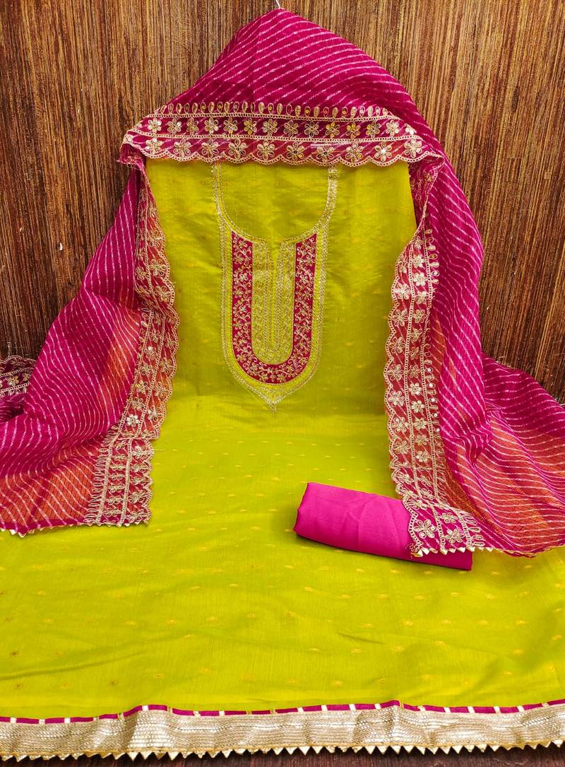 | Product Name | Green Chanderi Silk Embroidered Dress Material | |