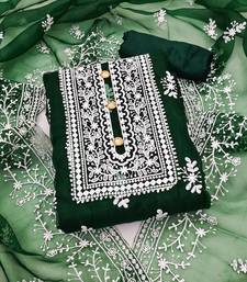 Green organza embroidered dress material unstitched