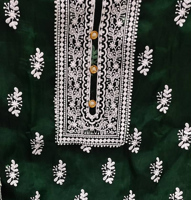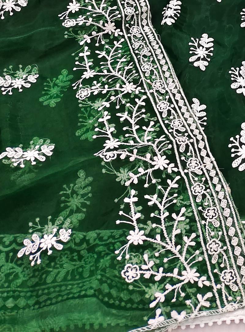 | Product Name | Green Organza Embroidered Dress Material | |
