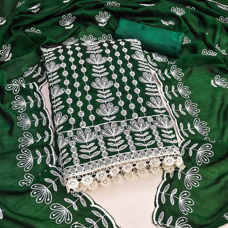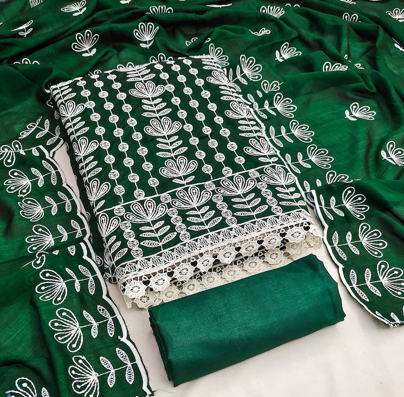 Green silk blend embroidered dress material unstitched