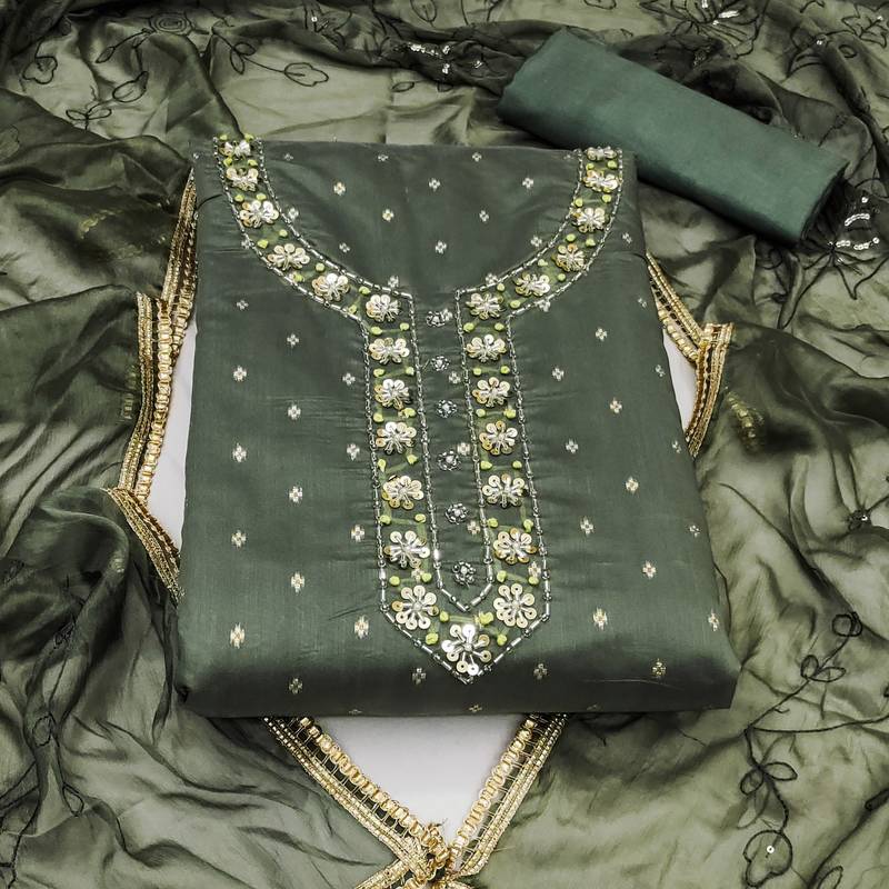 | Product Name | Green Jacquard Hand Embroidery Dress Material | |
