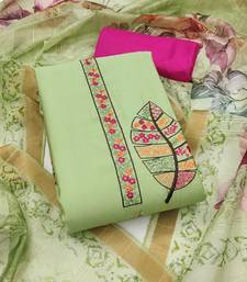 Green sequins cotton silk semi stitched churidar dress-materials