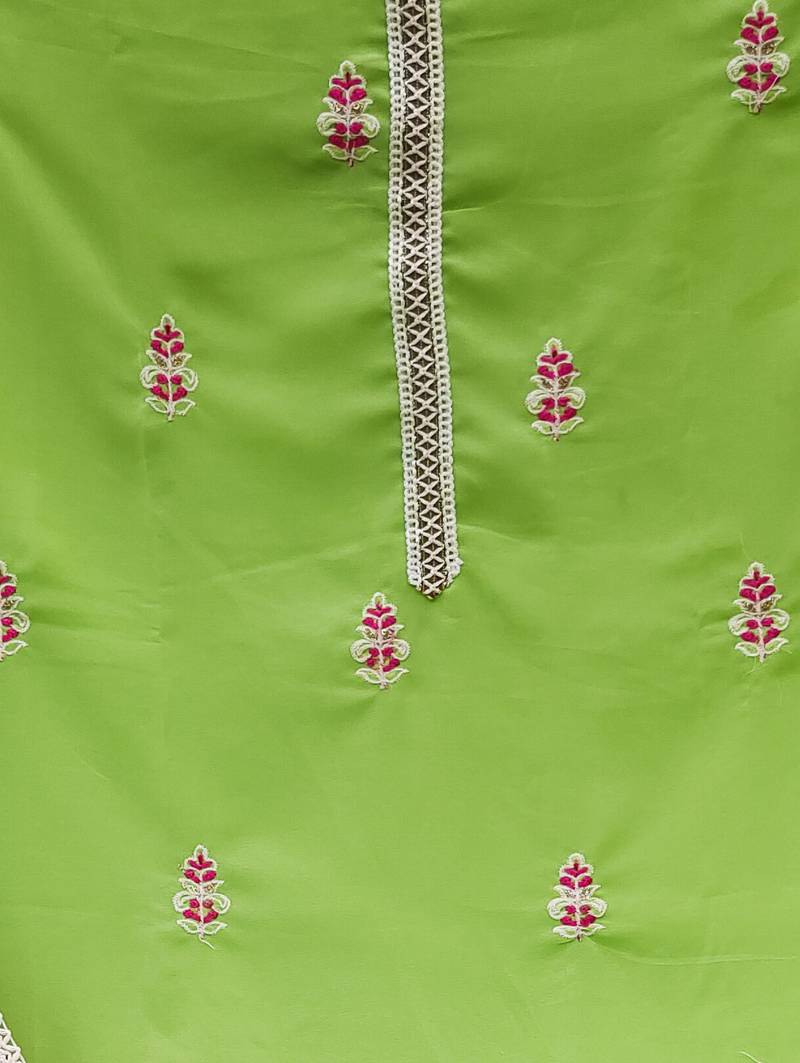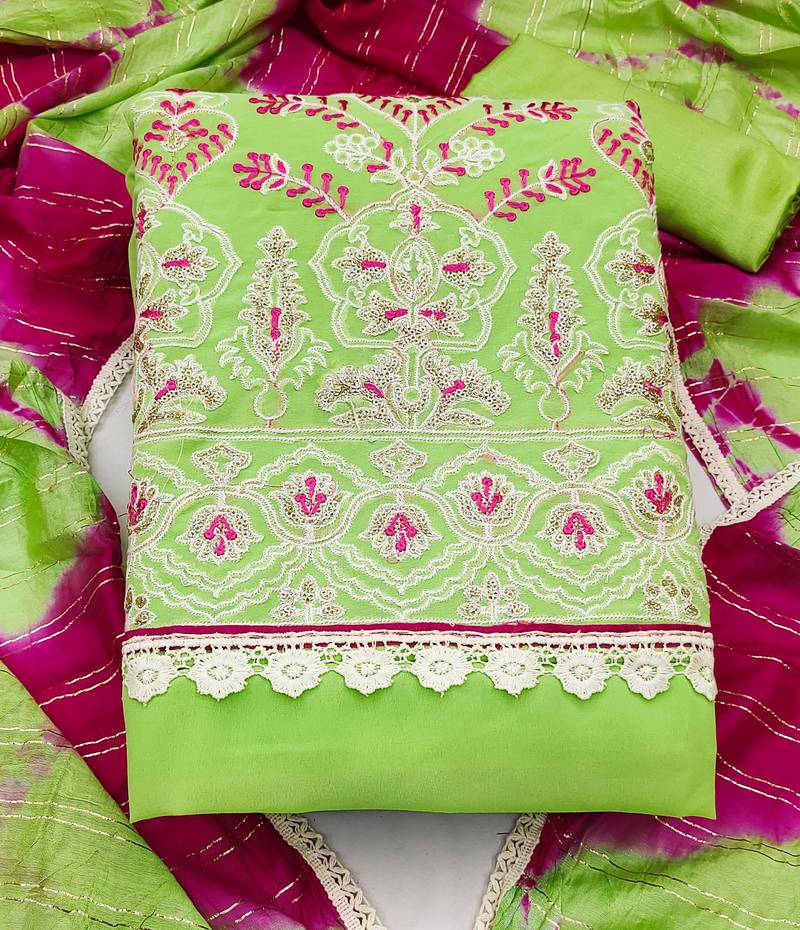 Green georgette thread embroidery dress material unstitched