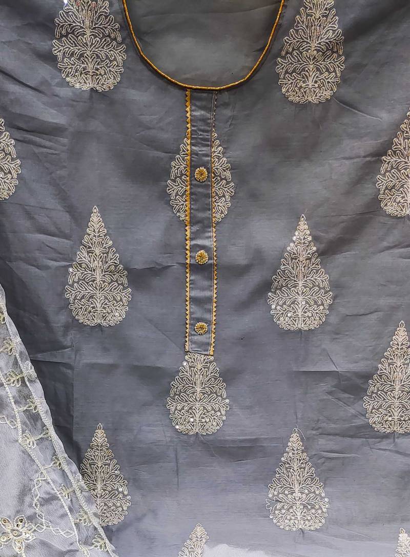| Product Name | Grey Chanderi Embroidered Dress Material | |